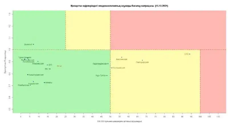 Матрица оценки эпидемиологической ситуации в регионах Казахстана на 15 декабря: