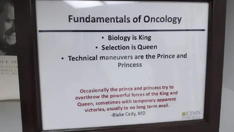 В онкологии есть одно главное правило: биология опухоли – это король, селекция – это королева, а технический маневр – это принц и принцесса. Очень важна биология опухоли, то есть ее свойства, какая она – если опухоль злокачественная, низкодифференцированная (Содержит клетки и ткани, которые сильно отличаются от нормальных, ведут себя намного агрессивнее. – Прим. ред.), то даже операция может не принести успеха. Селекция – это умение сделать правильный выбор: перед операцией провести курс химиотерапии, чтобы уменьшить опухоль, а потом оперировать, или провести операцию и только потом химиотерапию. А сам навык хирургов – это последнее в данном тезисе.