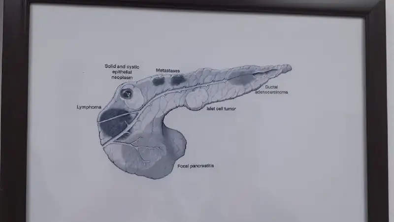 Прекрасно характеризует поджелудочную железу высказывание профессора-хирурга А. С. Голубева: «Как нежная пантера, уложила она голову в изгиб двенадцатиперстной кишки, распластала тонкое тело на аорте, убаюкивающей ее мерными движениями, а чуть изогнутый хвост беспечно отклонила в ворота селезенки – затаившийся красивый хищник, который неожиданно при болезни может нанести непоправимый вред: так и поджелудочная железа – прекрасна как ангел небесный, как демон коварна и зла».