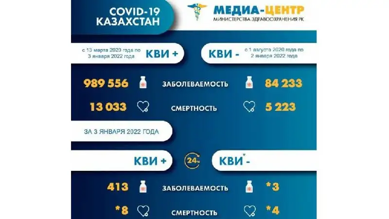 За прошедшие сутки, 3 января, в Казахстане восемь человек скончались от коронавируса и четыре – от коронавирусной пневмонии, сообщает Zakon.kz.