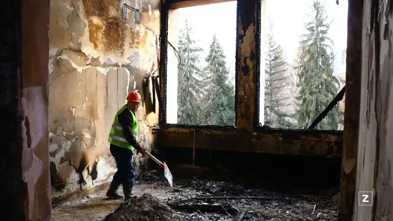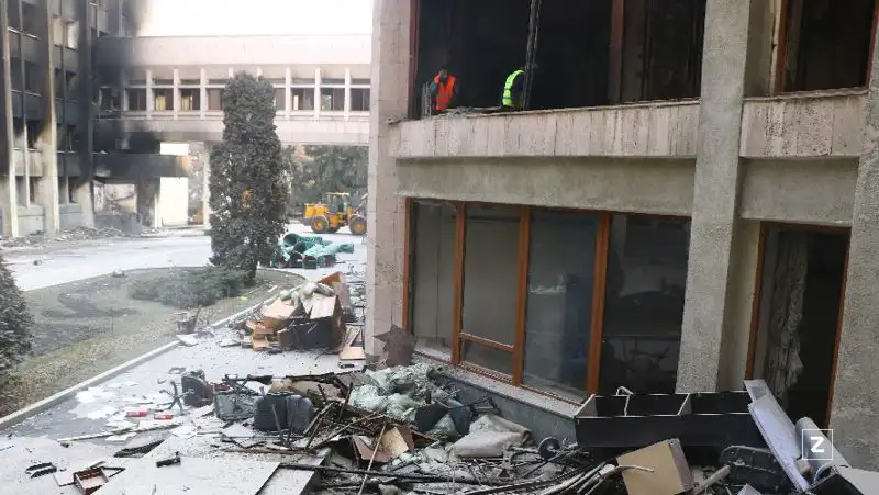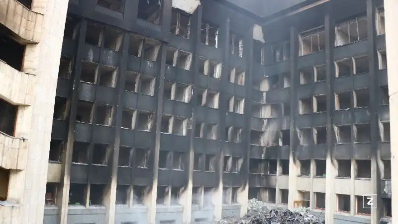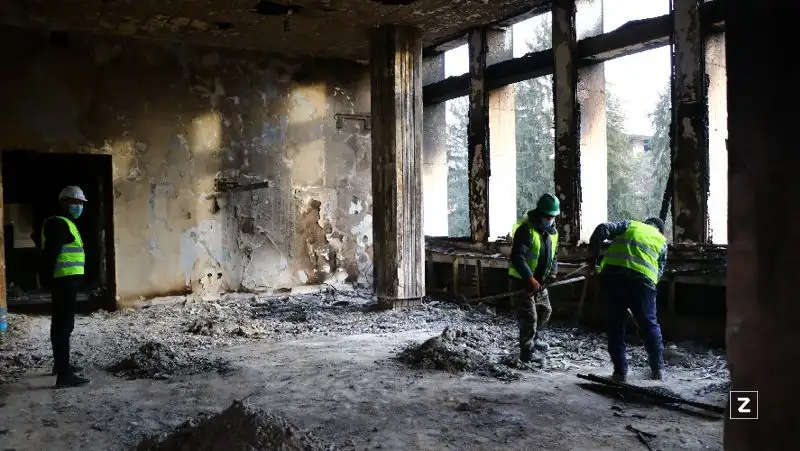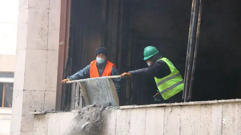 13 января начата работа по расчистке здания городского акимата после пожара, передает Zakon.kz.