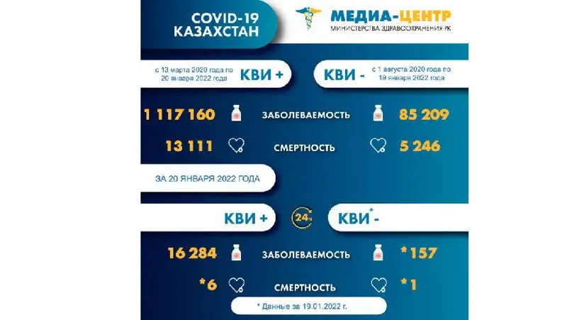 Информацию о заболеваемости коронавирусной инфекцией в Казахстане на 21 января 2022 года предоставила МВК по нераспространению COVID-19.