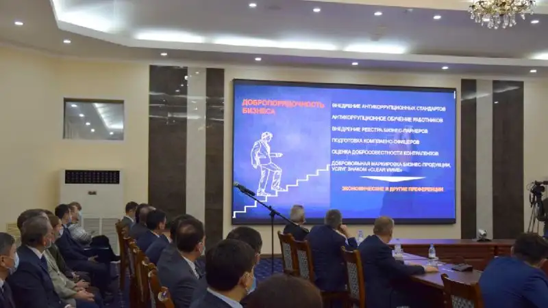 В ходе презентации проекта руководитель антикоррупционной службы области Жаркын Галымов акцентировал внимание участников встречи на блоке мер по добровольному внедрению антикоррупционных стандартов, предусмотренных в проекте концепции для содействия формированию добропорядочного бизнеса.