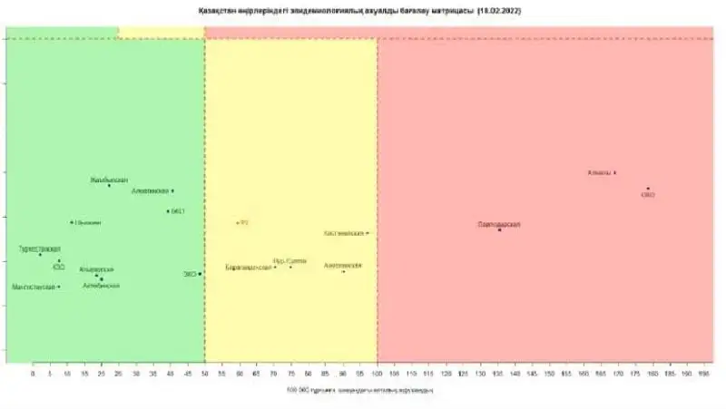 Матрица оценки эпидемиологической ситуации в регионах Казахстана: