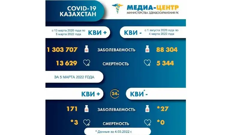 За прошедшие сутки в Казахстане зафиксировали 171 новый случай заражения КВИ. Информацию о заболеваемости предоставил Минздрав РК, сообщает Zakon.kz.