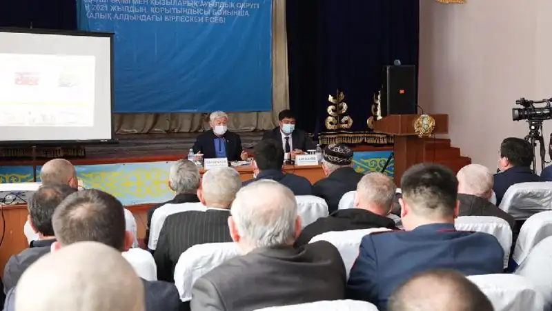 Далее с отчетом о проделанной работе в 2021 году выступил аким района Олжас Каржауов. В прошлом году объем промышленного производства увеличился на 1,1%. В сельском хозяйстве рост составил 3,8%, объем инвестиций в основной капитал увеличился на 4,3%.