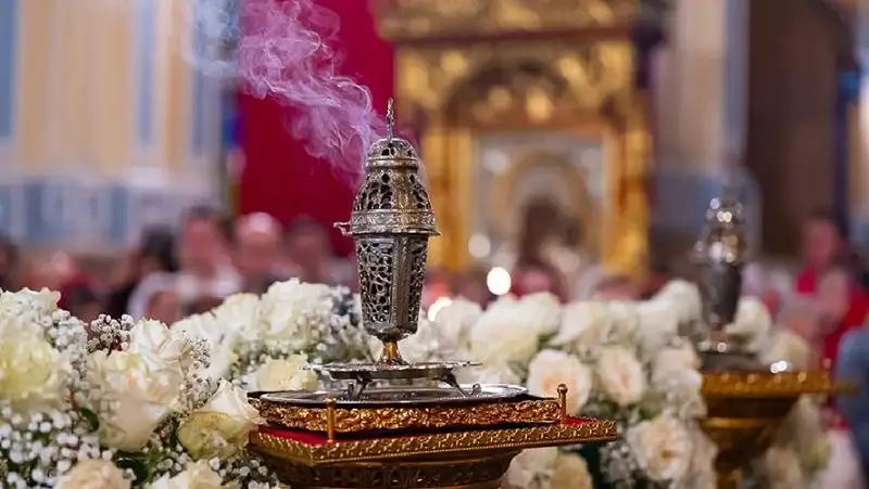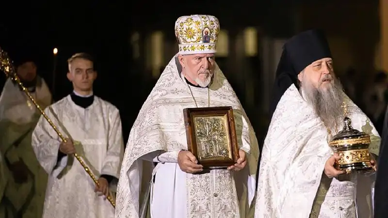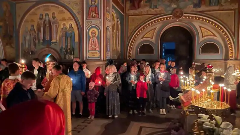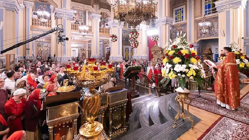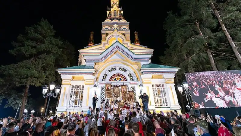 В Вознесенском кафедральном соборе Алматы богослужение совершил глава Православной церкви Казахстана митрополит Астанайский и Казахстанский Александр в сослужении соборного духовенства.