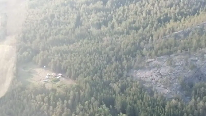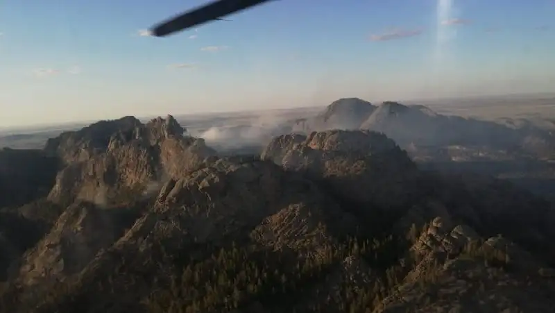Пожар в Баянаульском нацпарке сняли на видео с вертолета