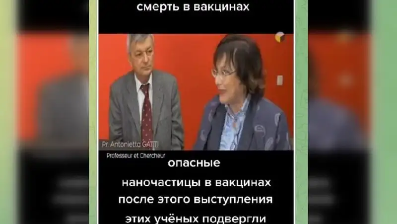 На самом видео показаны Стефано Монтанари и Антониетта Гатти, исследователи. В 2017 году они опубликовали свою работу, посвященную наночастицам в вакцинах. Позже на основе этого труда они выпустили книгу о вреде вакцинации.
