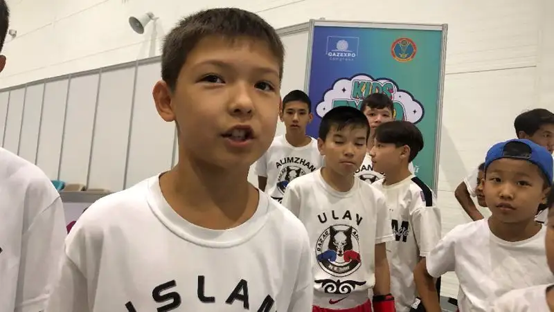 Боксом занимаюсь год. Мне нравится этот вид спорта. Сегодня мы с ребятами из клуба показываем свои навыки для посетителей выставки. В бокс пришел, потому что хочу быть сильным и мне также нравятся такие боксеры, как Сакен Бибосынов, Данияр Елеусинов и Сауль Альварес. Воспитанник боксерского клуба Ислам Айтбай