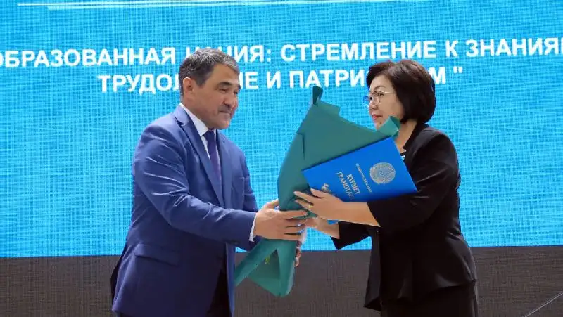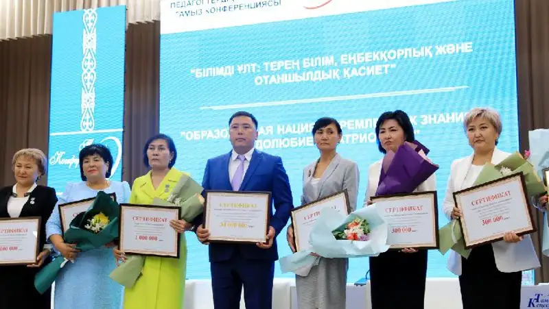 Далее состоялась церемония награждения. Отличившимся педагогам за вклад в развитие сферы образования региона вручили Почетную грамоту акима области и Благодарственное письмо акима области.