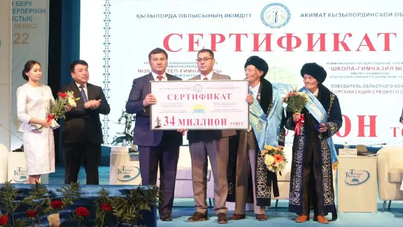 Лучшей школе Кызылординской области вручили сертификат на 34 млн тенге