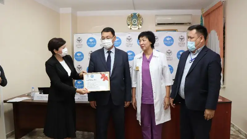 Сертификат аппаратного комплекса был передан благотворительным фондом AYALA директору областного перинатального центра Жанне Дильмановой.
