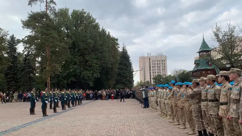 Молодые ребята будут служить в десантно-штурмовых войсках (ДШВ) в городе Кунаеве Алматинской области. Их пришли провожать родственники, друзья, подруги, школьники, представители акимата и, конечно же, ветераны Вооруженных сил РК.