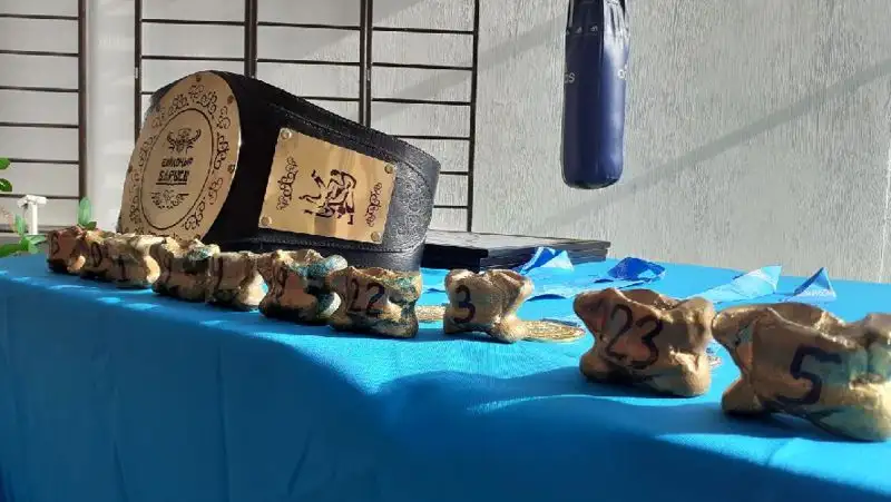 После официальной части состоялась жеребьевка – под каким номером будут выступать борцы, определяли с помощью асыков.
