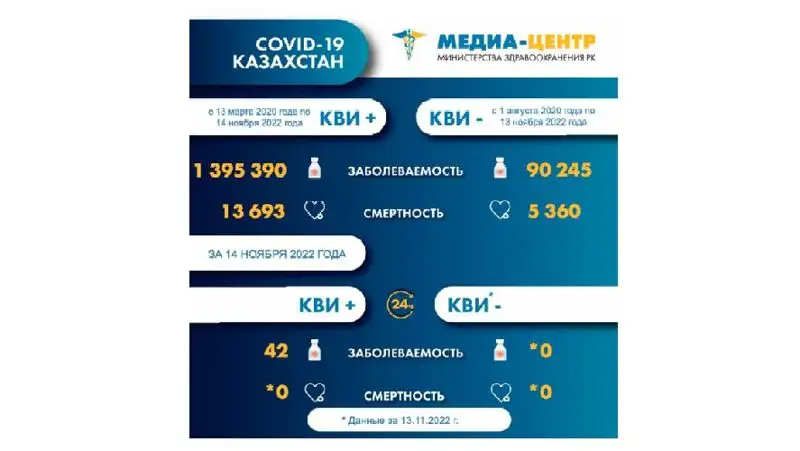 За прошедшие сутки в Казахстане выявили всего 42 случая заболевания КВИ. Данные о заболевших предоставили в Минздраве РК, сообщает Zakon.kz.