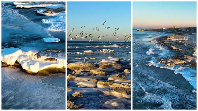 Блогер из Актау Нуркен Тажибай на своей странице в Instagram 12 декабря 2022 года показал замерзающее Каспийское море, сообщает Zakon.kz.