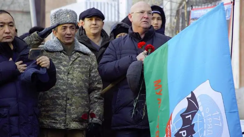 У дома также собрались ветераны войны в Афганистане и молодое поколение казахстанцев – воспитанники республиканского движения "Жас сарбаз" и военно-патриотического клуба имени Кара майора. Специально на это мероприятие приехал из Узбекистана ветеран войны в Афганистане, командир первого "мусульманского батальона" полковник Хабибджан Холбаев, участник штурма дворца Амина в 1979 году.