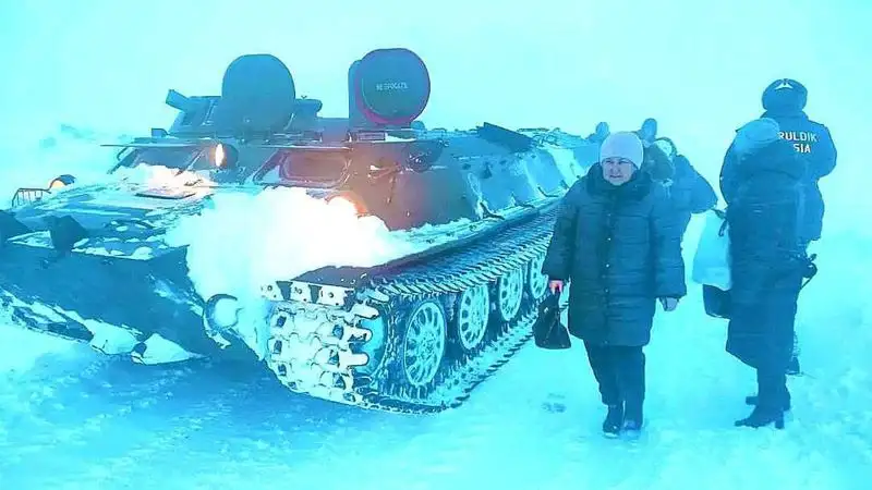 На 40 километре трассы "Алматы - Усть-Каменогорск" под руководством начальника бронетанковой службы майора Ержана Быжкеева военнослужащие вызволили из снежного плена и эвакуировали на специальной технике 50 человек и около 10 автомашин. Все они были доставлены в город Аягоз.