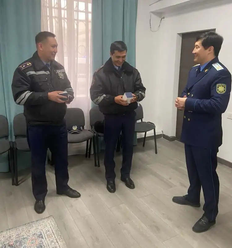 10 марта прокурор Турксибского района Алматы Избасар Масакбаев, поблагодарив инспекторов за обеспечение слаженной и оперативной работы по спасению человека, наградил их именными наручными часами.