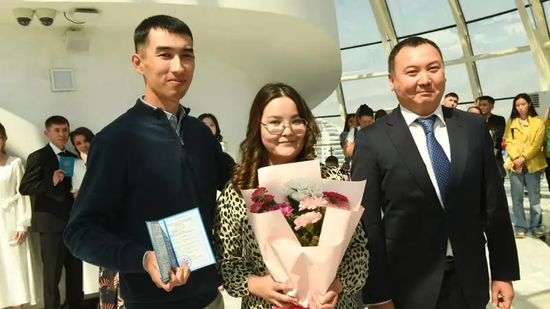 Несколько столичных пар заключили брак на вершине "Байтерека"
