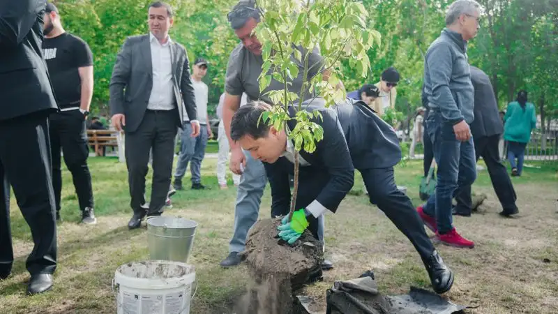 На его территории заместитель акима области Бисембиев совместно с жителями посадил саженцы.