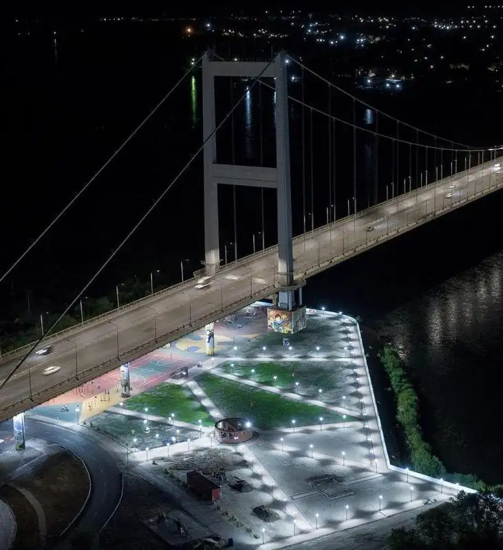 Вместе с тем продолжаются работы по организации общественного пространства и в левобережной части города, также под подвесным мостом. Долгие годы эта площадь была ничем не облагорожена, если не считать бетонных дорожек и нескольких скамеек.