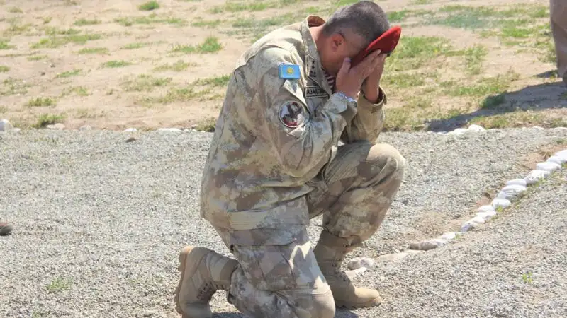 "В изнуряющую жару кандидаты сдавали нормативы по передвижению зигзагообразно по-пластунски, рыли одиночные окопы, накладывали жгут и перетаскивали "раненого" товарища. Затем было преодоление зараженного участка местности в противогазах и последующий марш-бросок до палаточного лагеря. Все это преодолевалось в установленное время и заданные нормативы", – говорит об условиях испытаний боец спецназа "Бүркіт" с позывным Зверь.
