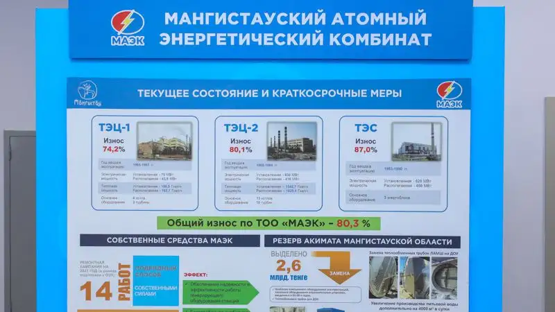 В текущем году за счет собственных средств предприятия ведется капитальный ремонт турбоагрегатов, котлоагрегатов и вспомогательного оборудования. Из резерва акимата Мангистауской области выделено 2,6 млрд тенге на замену наиболее изношенного оборудования.