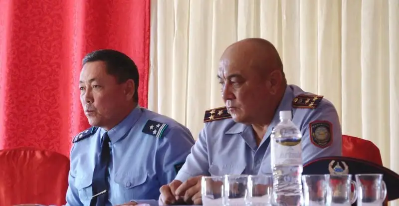 В нем приняло участие руководство Департамента полиции Туркестанской области, в том числе начальник Следственного управления Жандос Кулмахан и начальник Управления местной полицейской службы Асылхан Тореханов.