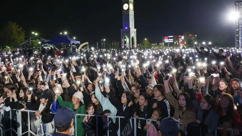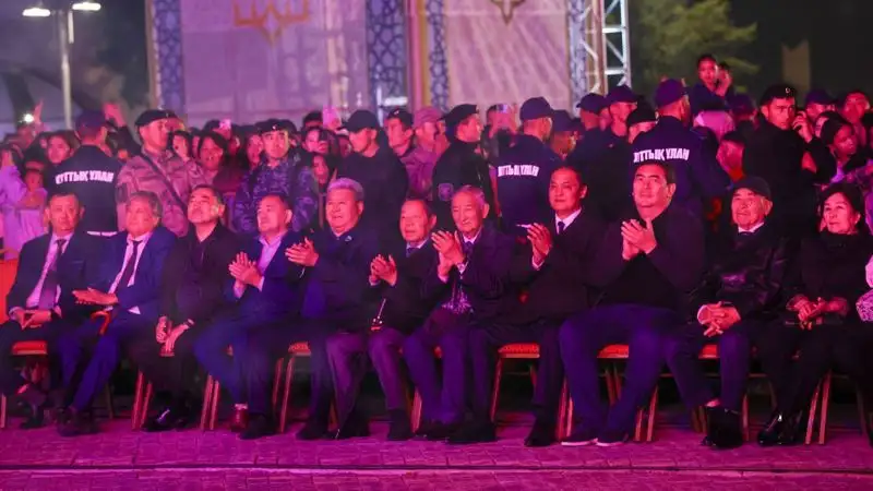 Вместе с жителями и гостями города концертную программу посмотрели аким Жамбылской области Ербол Карашокеев и аким города Бакытжан Орынбеков.