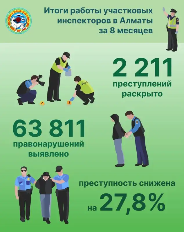 В системе ОВД участковые инспектора полиции представляют самую многофункциональную службу полиции. Они являются ключевой фигурой профилактики правонарушений и преступлений, обеспечения общественного порядка, безопасности граждан в жилых микрорайонах и населенных пунктах. За 8 месяцев текущего года участковыми инспекторами раскрыто 2 тысячи 211 преступлений, выявлено 63 тысячи 811 правонарушений.