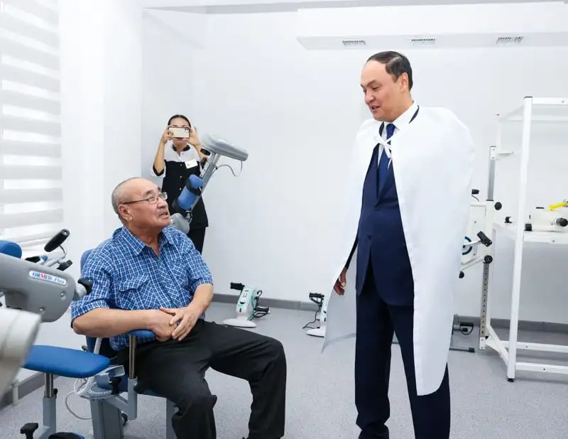 Ербол Карашукеев и Назгуль Сагиндыкова вместе с гостями осмотрели новый центр, ознакомились с материально-технической базой и поговорили с жителями, которые получают здесь лечение.
