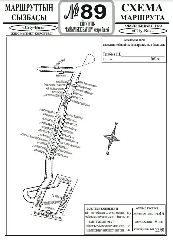 "Он станет курсировать от станции метро "Райымбек батыр" до ЖК Gate City, расположенного в Илийском районе Алматинской области. Транспортное обслуживание на данном маршруте будет вестись автобусами большой вместимостью марки МАЗ-203069 в количестве 13 подвижных единиц с интервалом движения 8 минут".Пресс-служба акимата Алматы
