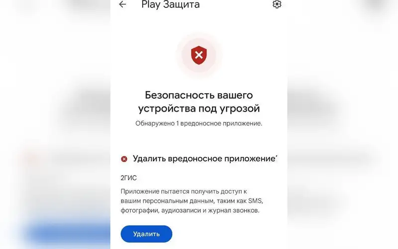 Уведомление может помешать пользоваться устройством, но его можно проигнорировать. При первом запуске 2ГИС может быть показано уведомление "Обнаружено вредоносное приложение", но программу все равно можно запустить, если нажать кнопку "Открыть".