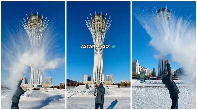 Эффектное видео с кипятком на 30-градусном морозе восхитило казахстанцев
