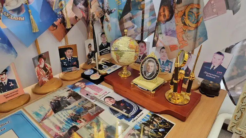 Позже, говорит Жанбол Умирзаков, он постепенно своими силами начал переделывать кабинет начальной военной подготовки в музей: собирал и развешивал фотографии героев нашей страны, и продолжает делать это до сих пор.
