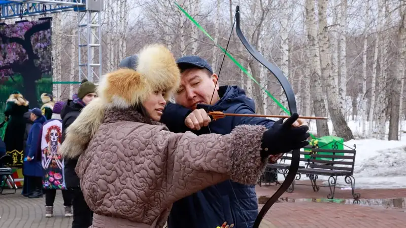 Взрослые и дети могли поучаствовать в спортивных соревнованиях – стрельбе из лука, перетягивании каната, а также поиграть в казахскую национальную игру "Асыки".
