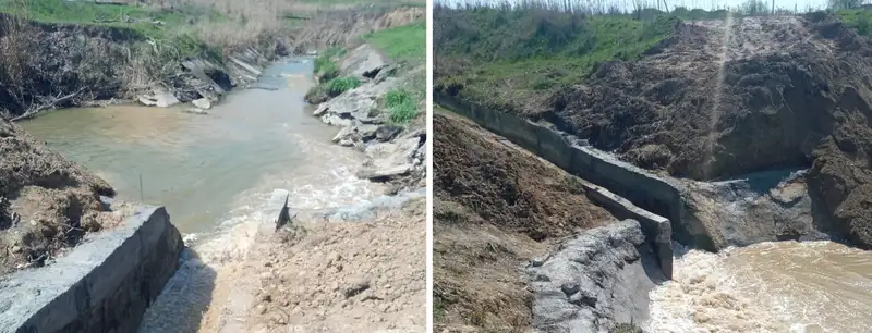 Как сказано в сюжете телеканала "КТК", часть поливной воды в район приходит по каналу из Узбекистана. Он оказался поврежден, поэтому воду на время перекрыли. Сейчас специалисты двух стран экстренно приводят все в порядок.