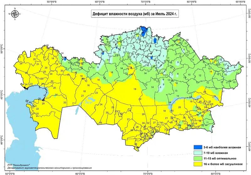 В РГП "Казгидромет" сегодня, 12 августа 2024 года, предоставили корреспонденту Zakon.kz прогноз агрометеорологических условий уборки яровых зерновых.