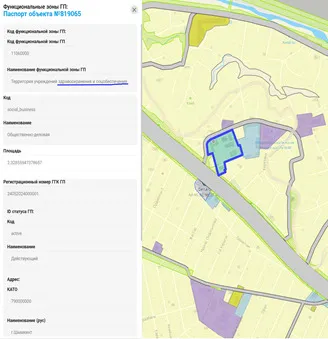 Так, на примере города Шымкент при подгрузке цифрового ПДП отмечается несоответствие территорий функциональному назначению с действующим генеральным планом города (Рис.2).