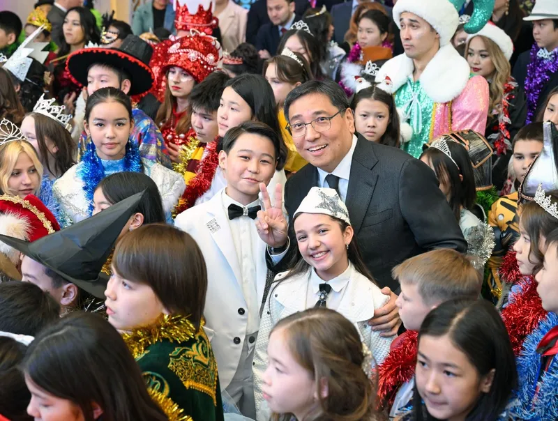 Гостей елки от имени главы государства Касым-Жомарта Токаева поздравил аким Алматы Ерболат Досаев.