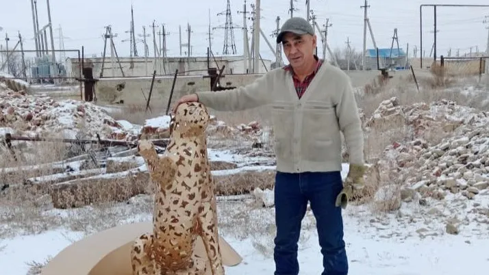 Азамат Кенжегалиев – житель Индерского района Атырауской области известен как мастер, создающий различные произведения из металла. Одной из его уникальных работ является арт-скульптура собаки по кличке Пшон, которая прославилась во время паводков и была убита в декабре 2024 года. Над металлической скульптурой мастер начал работать через несколько дней после новостей о гибели пса. Чтобы увековечить преданность собаки, Азамат Кенжегалиев использовал сердцевидные металлические детали и создал скульптуру за месяц.