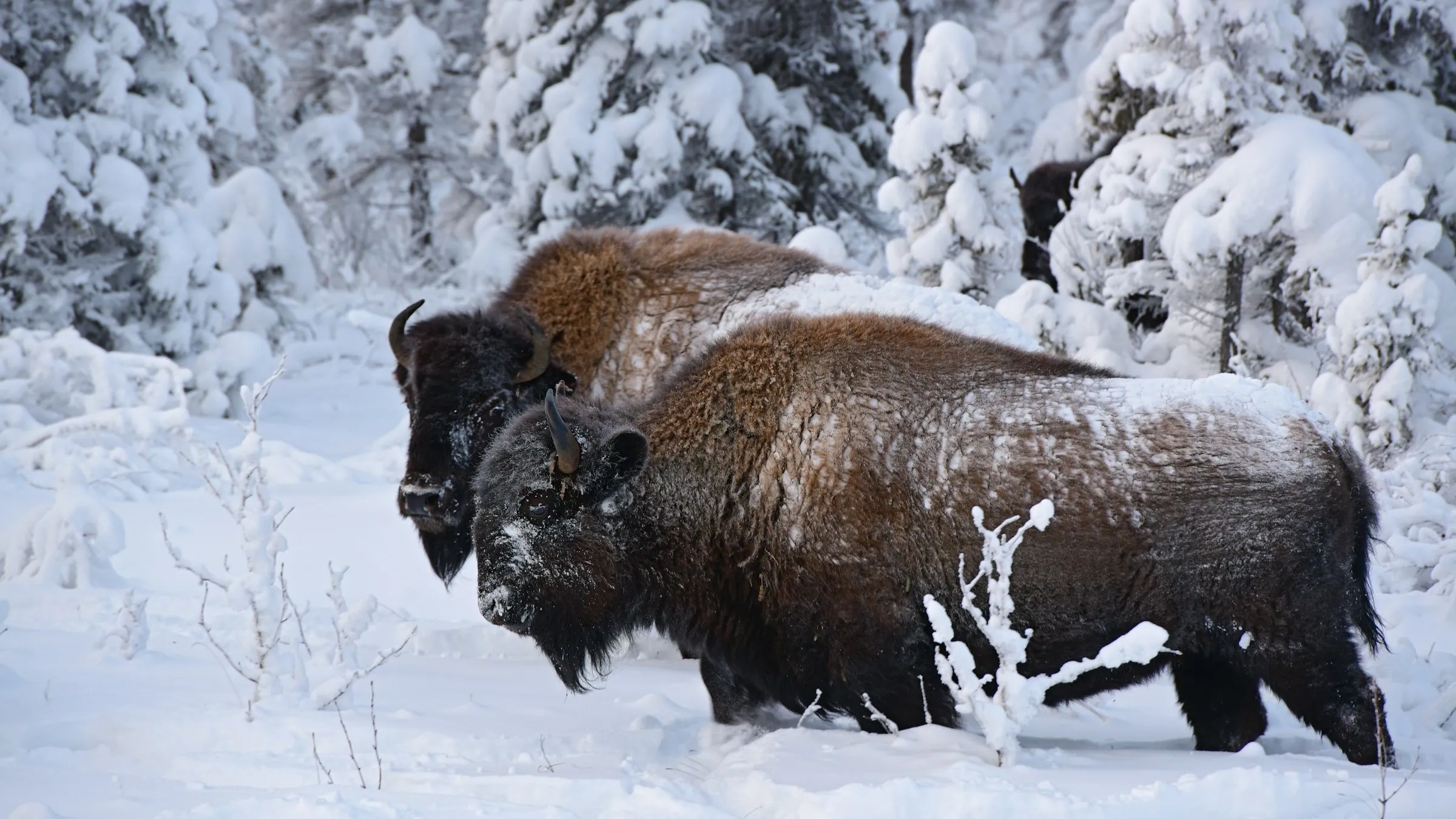 Несмотря на их подвижность и кажущуюся игривость, грозный вид животным придает длинная густая шерсть, крепкое телосложение и рога. Вес бизонов может достигать несколько сотен килограммов.