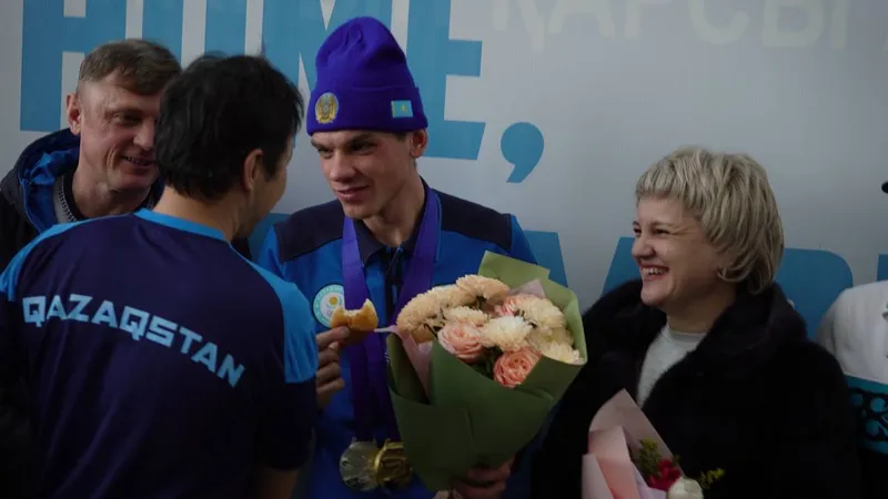 В Астане встретили чемпиона и серебряного призера Азиатских игр по биатлону
