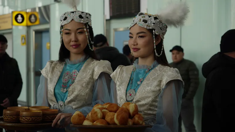 В Международном аэропорту столицы прибывшим устроили небольшой праздник – спортсменов встречали с баурсаками и музыкой.