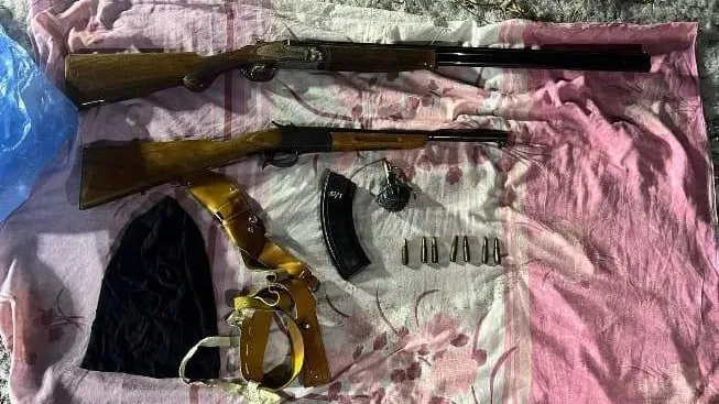 В Алматинской области в одном из поселков в канаве обнаружены два охотничьих ружья разных калибров (одно из которых похищено во время январских событий), светошумовая граната, магазин от АК-74, семь патронов и черная тактическая маска.