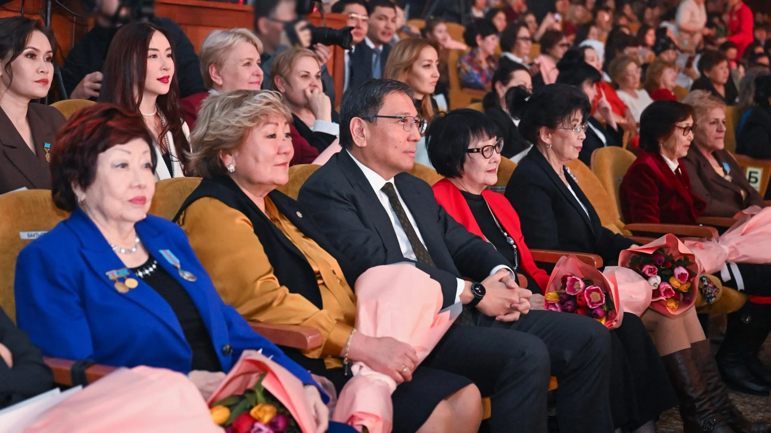 Концерт посетил аким Алматы Ерболат Досаев. Среди почетных гостей были выдающиеся женщины – многодетные матери, ветераны труда, ученые, педагоги, деятели культуры, медицины, спорта и других сфер.
