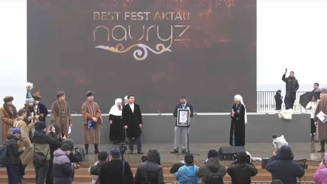 Жители Актау в национальной одежде установили мировой рекорд
