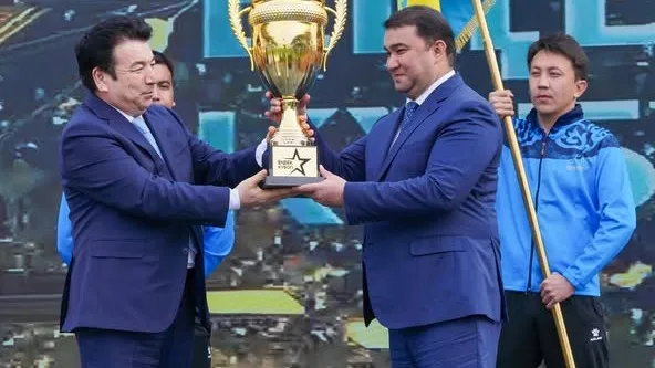 "От всей души поздравляю с открытием первой республиканской спартакиады "Кубок труда", организованной среди студентов колледжей в рамках объявленного Главой государства Года рабочих профессий! Большое значение имеет то, что республиканская спартакиада проводится в священном и историческом месте нашей страны – городе Туркестане. Этот регион – яркий пример единства, цивилизации, культуры и созидания. В настоящее время ведется большая работа по трансформации системы технического и профессионального образования. С 1 сентября 2025 года объем подушевого финансирования увеличится вдвое. Это позволит улучшить материально-техническую базу колледжей, повысить квалификацию педагогов. Надеюсь, что сегодняшняя спартакиада не только подарит вам спортивную энергию, но и сформирует новое отношение к труду. Желаю всем удачи, крепкого здоровья и высоких побед!" – сказал Гани Бейсембаев и вручил Кубок труда акиму Туркестанской области Нуралхану Кушерову.